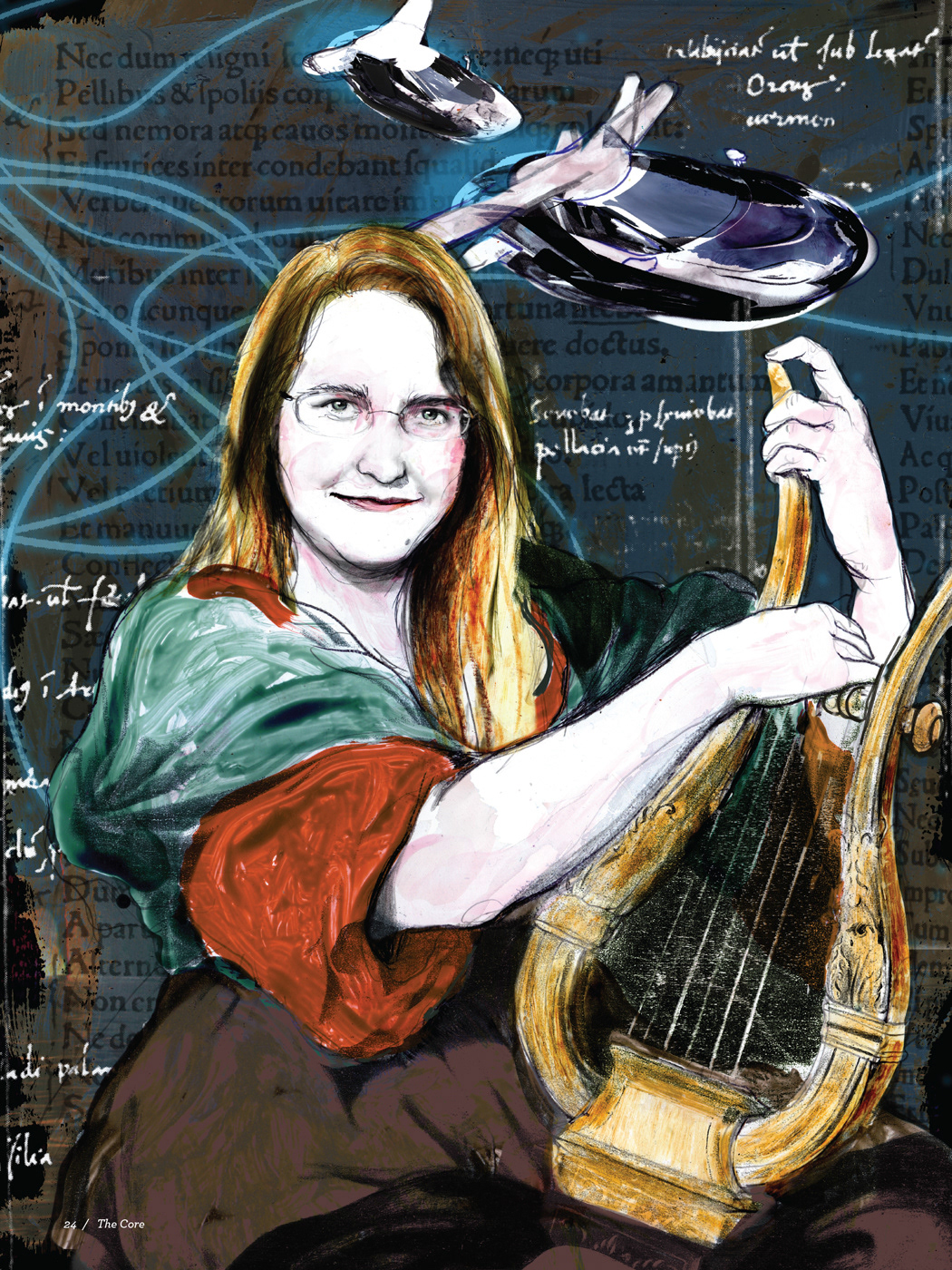portrait of Ada Palmer for University of Chicago’s Core Magazine! The article called “Renaissance Woman: Historian Ada Palmer researches the history of ideas, writes science fiction, and has helped elect a new pope (c 1470) four times.” Anyone interested in Ada’s history course, Censorship from the Inquisition to the Present?